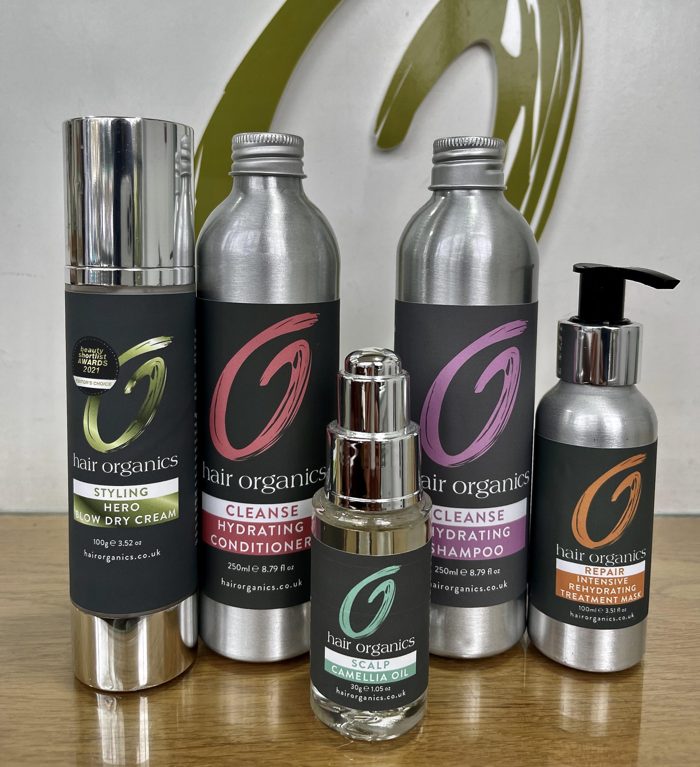 Great hair needs great products… Our exclusive Organic hair care range is Vegan, sulphate free, gluten free, paraben free, cruelty free in 100% recyclable aluminium packaging